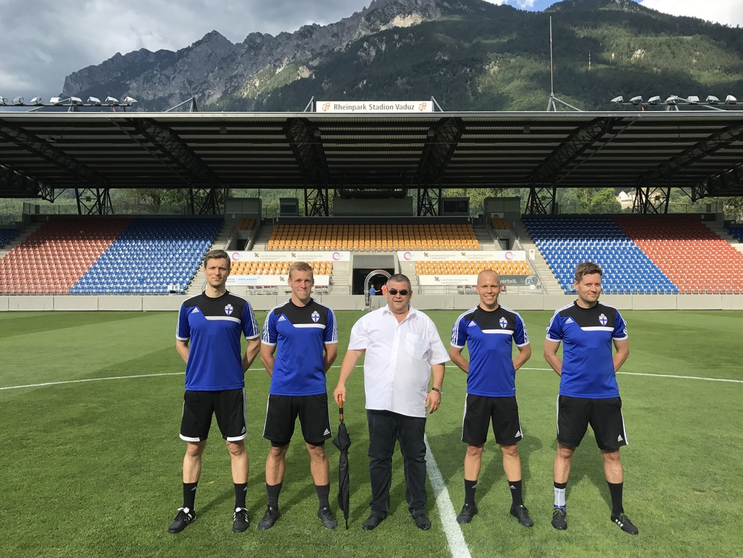 Euroopan jalkapalloliitto UEFA on nimennyt suomalaiserotuomareita torstain 13.7. Eurooppa-liigan toisen karsintakierroksen otteluihin. Antti Munukan johtama suomalaiskvartetti matkaa Liechtensteiniin, jossa pelataan ottelu FC Vaduz – Odds BK. Munukan avustavina erotuomareina toimivat Jukka Honkanen ja Mikko Alakare sekä neljäntenä erotuomarina Marko Grönholm. |